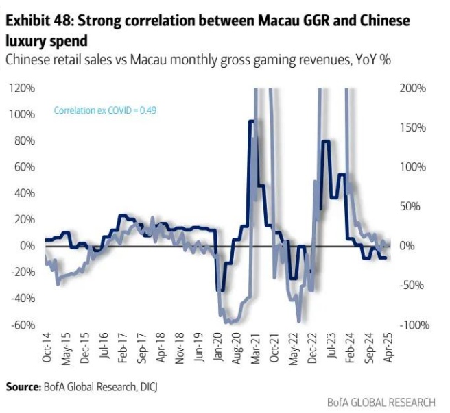 (澳门GGR和中国奢侈品消费表现出强相关性)