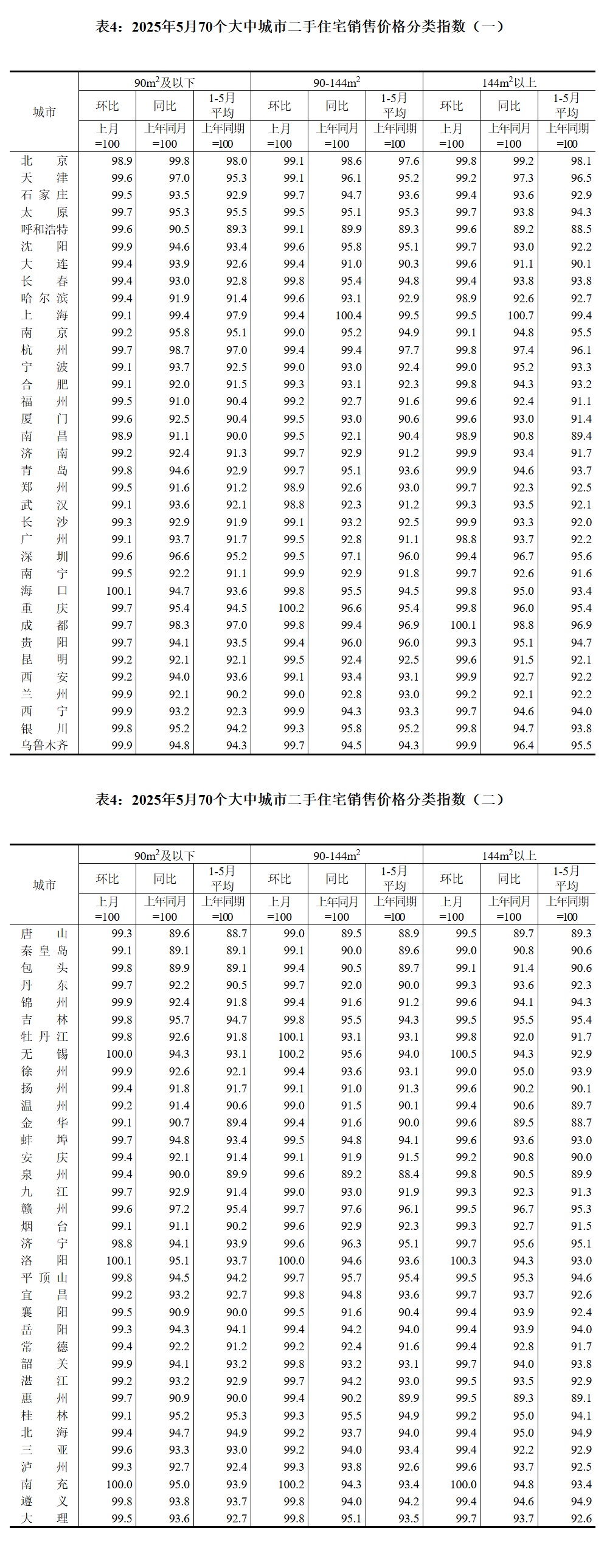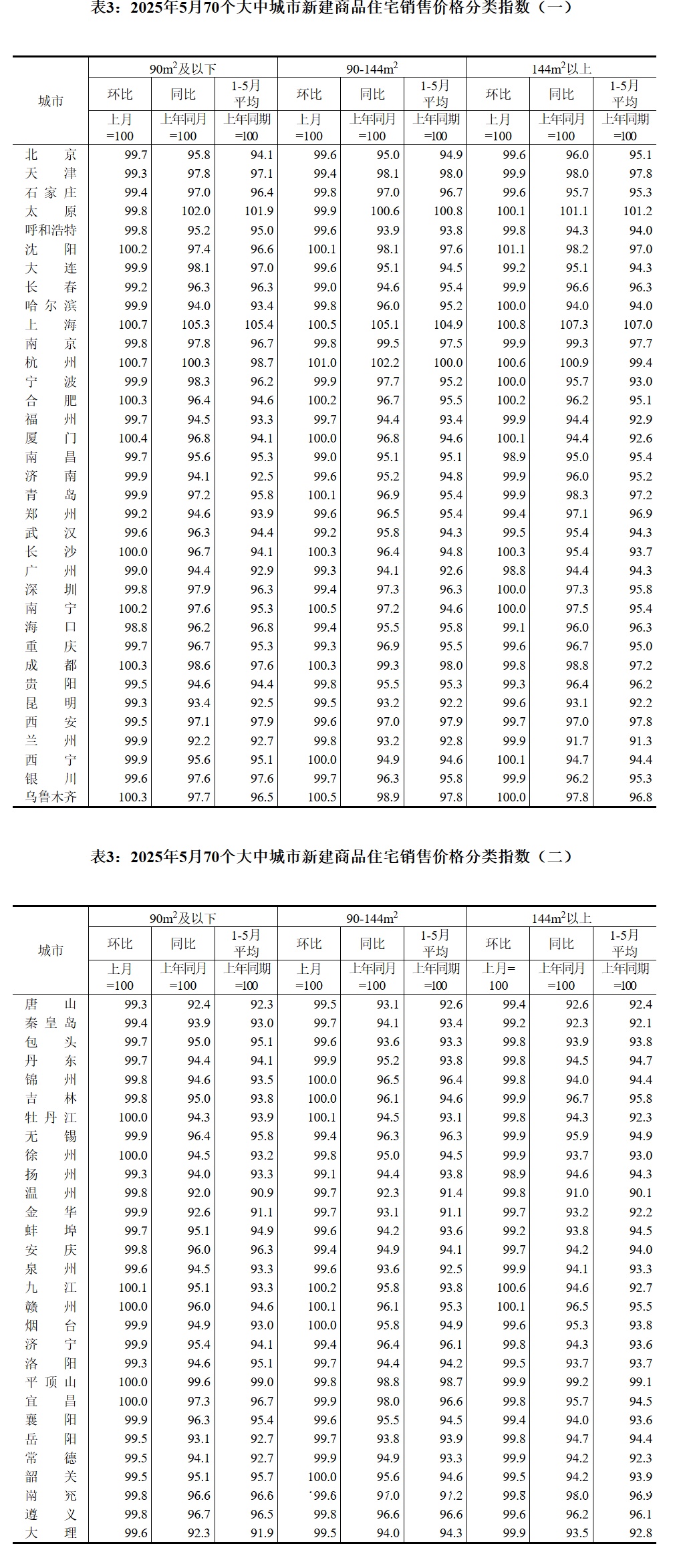 2025年5月份70个大中城市商品住宅销售价格变动情况