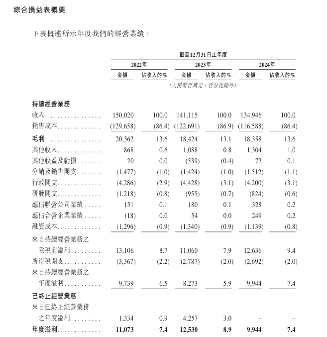 财务方面,于2022年度、2023年度及2024年度,新奥股份实现收入分别约为1500.2亿元、1411.15亿元、1349.46亿元人民币;同期,年度溢利分别为110.73亿元、125.3亿元、99.44亿元人民币。