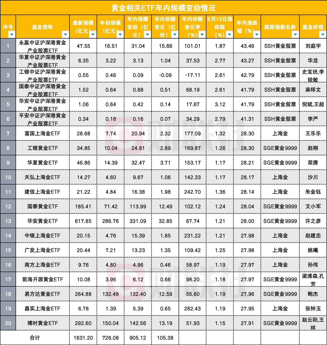 黄金ETF突破号角不断,年内涨出多只规模翻番基,总规模也翻倍,增配动力不止