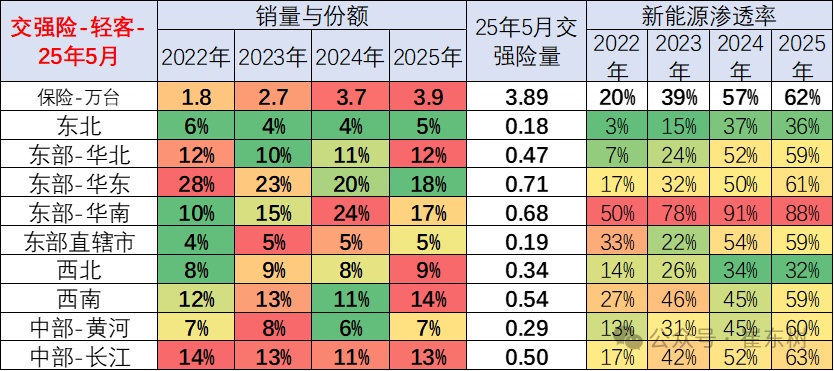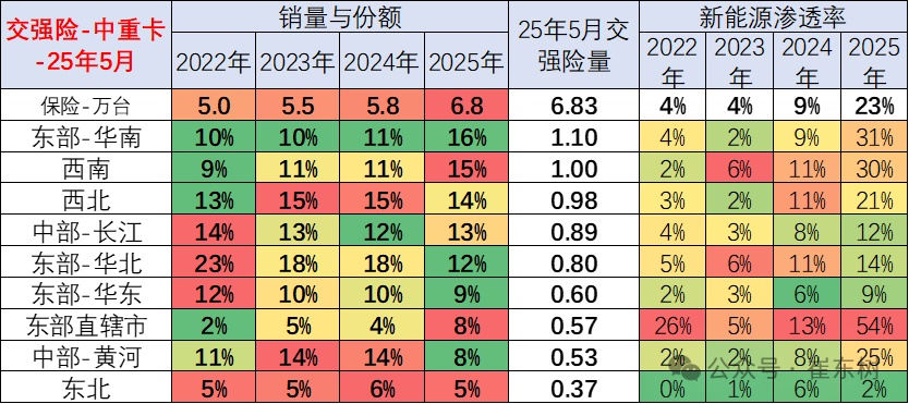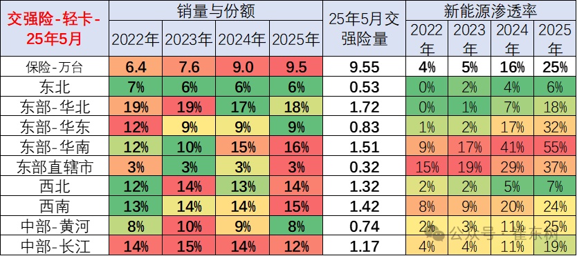轻卡市场主要是在东部-华北和华南等地区份额较高,但西北、西南地区的轻卡表现逐步走强。