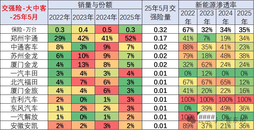 新能源大中客渗透率高的企业主要是二线企业,主力企业都是燃油车的新能源全面发展的,且主力企业的燃油车市场不错。