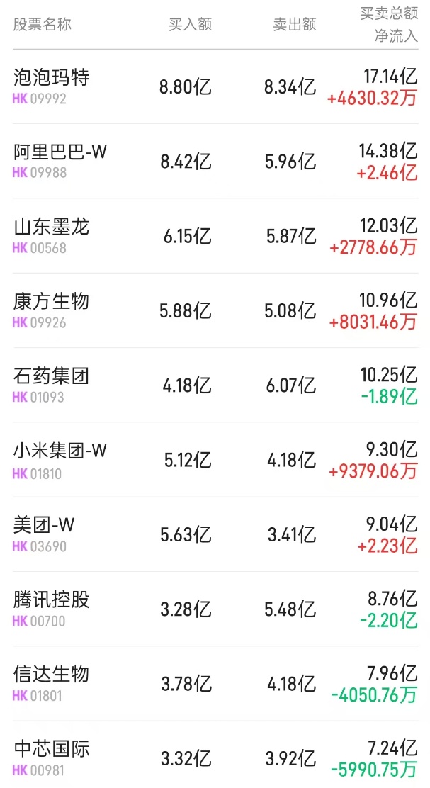 此外,小米集团-W(01810)获净买入2.2亿港元,而中芯国际(00981)、中海油(00883)分别遭净卖出5990万、8088万港元。