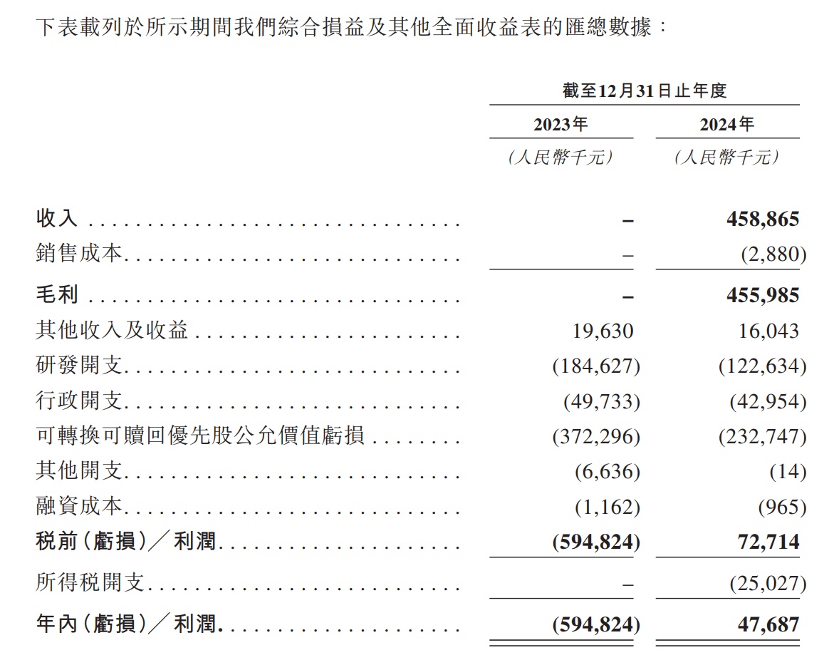 财务方面,2024年度岸迈生物录得收入约为4.59亿元人民币,此外,于2023年度、2024年度,年内亏损分别约为5.95亿元、0.48亿元人民币。