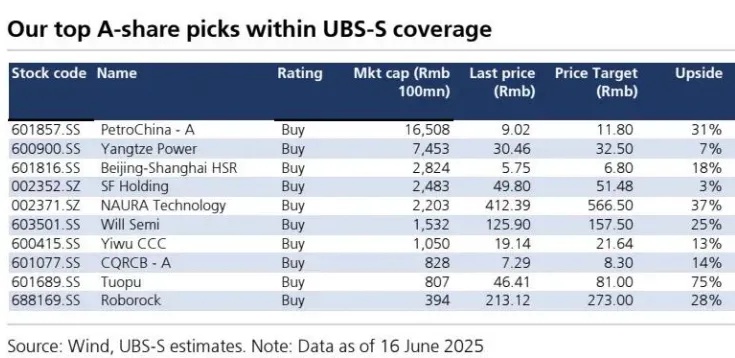 假设中美关税维持当前水平,瑞银预计2025年沪深 300A 股每股收益(EPS)同比增长 6%。鉴于基数较低,预计今年 A 股盈利每个季度将温和反弹,但其余压力可能限制整体盈利预期的上调。在中美贸易摩擦存在不确定性的情况下,A 股估值近期可能在低位区间波动。