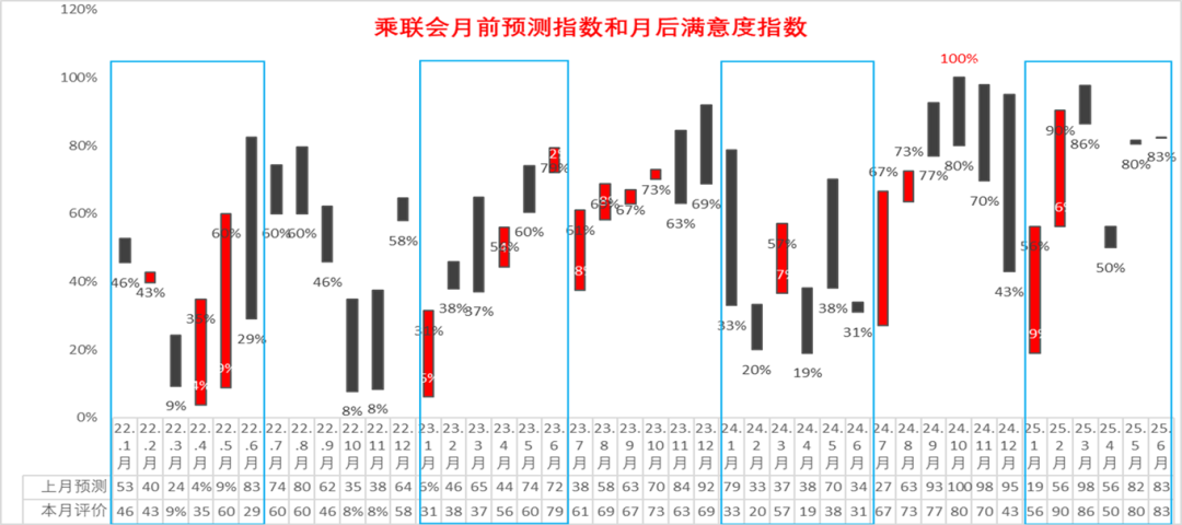 我们按照PMI指数的设定方式和评价结果评价月度市场表现。根据厂家内部人员的预测汇总测算,预测团队2月以来对市场预测很乐观,5月月前预测是乐观度82%,6月初的5月月后满意度为80%。团队对6月市场的乐观度达到83%,这是近期的超强的市场乐观点。今年对6月的预估也是比较乐观的,这体现车市增长的促进性很强。