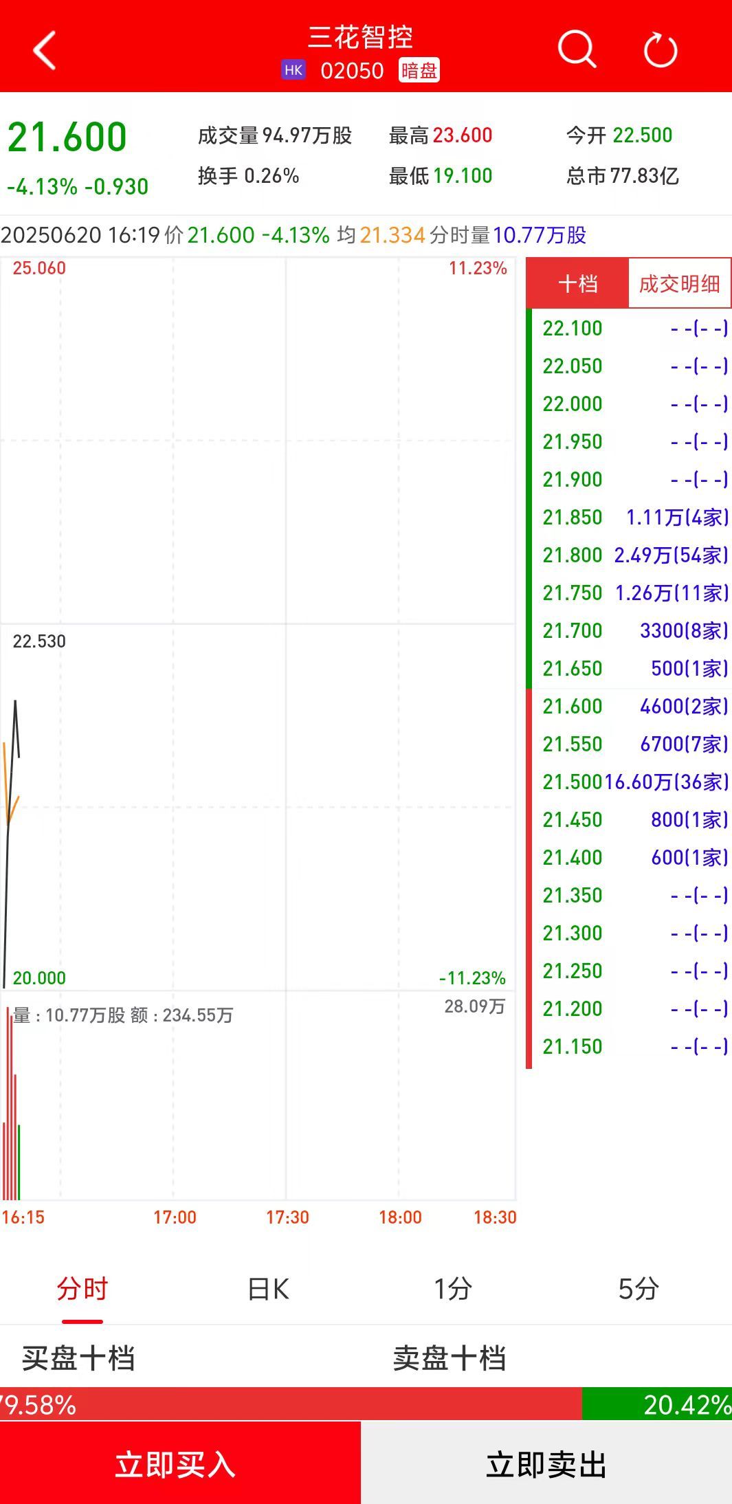 智通财经APP获悉,三花智控(02050)将于6月23日(周一)在香港挂牌。截至发稿,利弗莫尔证券暗盘交易显示报价21.6港元,较招股价22.53港元下跌4.13%,每手100股,不计手续费,每手亏93港元。