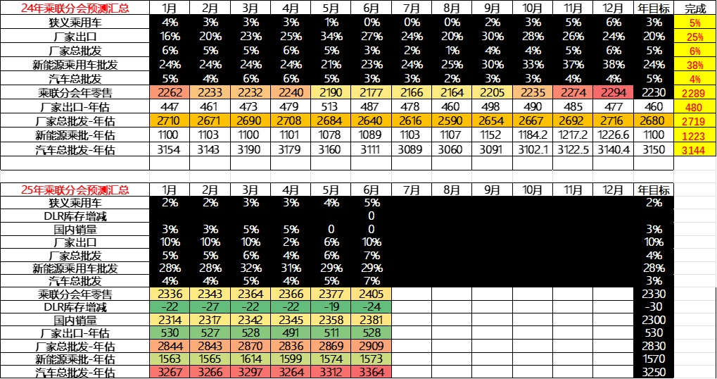 2025年全国汽车批发预测:2025年3364万台,增7%,预测总量年初的预测值高3个百分点。