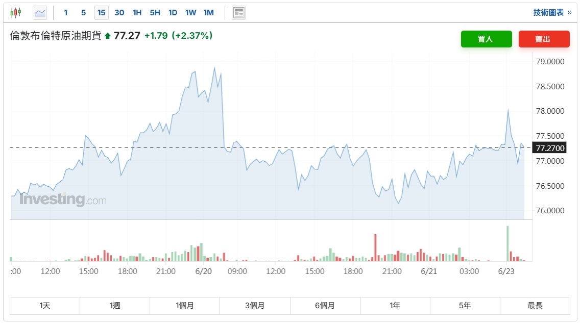 智通财经APP获悉,美国对伊朗福尔多、纳坦兹和伊斯法罕三处核设施的军事打击行动,引发国际能源市场剧烈震荡。全球基准布伦特原油价格一度应声飙升5.7%至每桶81.40美元,延续近三周的上涨态势,油价价差进一步拉大。截至发稿,布伦特原油期货回落至77.27美元/桶。