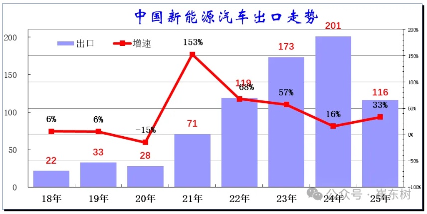 2025年5月中国新能源汽车出口29.6万辆增43%的表现也是很好的;2025年1-5月新能源汽车出口量116万辆,同比增33%,增速高于2024年1-5月的29%增速。