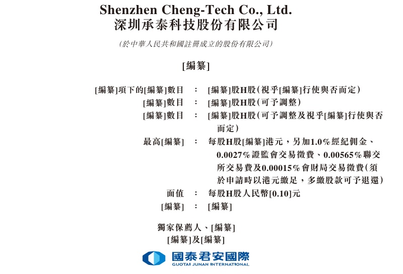 智通财经APP获悉,据港交所6月23日披露,深圳承泰科技股份有限公司(简称:承泰科技)向港交所主板递交上市申请,国泰君安国际为其独家保荐人。