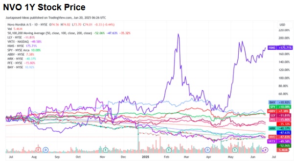许多不利因素归因于竞争加剧、营收增长趋势放缓以及管理层对CagriSema减肥目标 25%的过度承诺。而更为重要的因素自然归因于医保行业所面临的监管审查,而“特朗普总统旨在大幅降低消费者处方药价格的新行政命令”所带来的潜在影响更是雪上加霜。