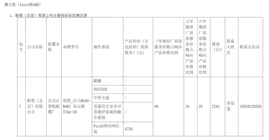 第七包(Intel和AMD芯片):联想(北京)有限公司中标,中标金额1059.993万元。