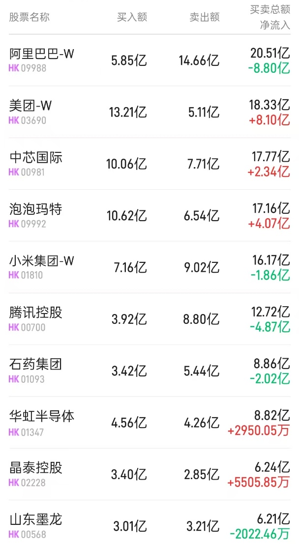 阿里巴巴-W(09988)遭净卖出12.85亿港元。消息面上,阿里巴巴集团CEO吴泳铭6月23日发布全员邮件宣布,即日起,饿了么、飞猪加入阿里中国电商事业群。行业人士分析称,过去两个月,淘宝闪购协同各方展现出的业务潜力,促使阿里进一步坚定了加大投入、整合资源的决心。特别是即时零售领域,淘宝闪购与饿了么将加强协同,全面打通各项资源。