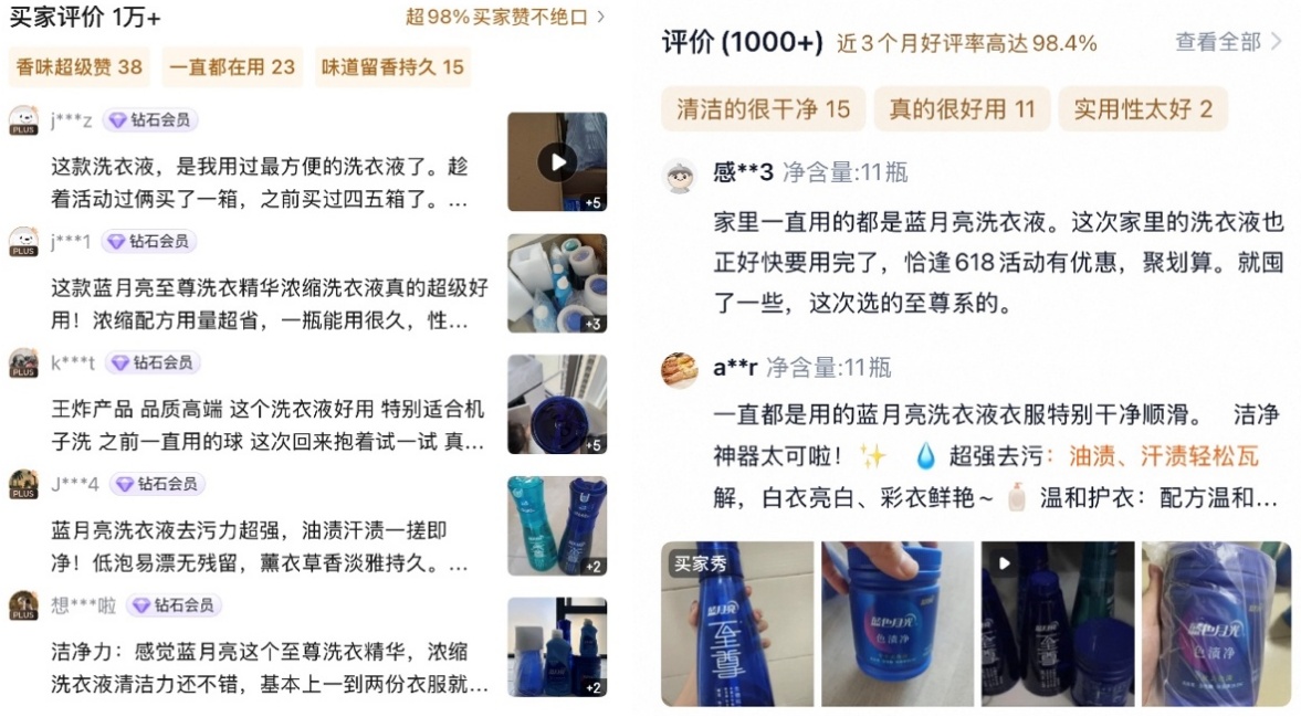 而市场反馈就是蓝月亮产品力最直接的验证。在蓝月亮淘宝官方旗舰店,至尊洗衣液近3个月以来好评率高达98.4%,用户评价该产品“清洁的很干净”“真的很好用”“实用性太好”等。在蓝月亮京东自营旗舰店,98%的买家对至尊生物科技洗衣液赞不绝口,称赞其为“王炸产品”“品质高端”。