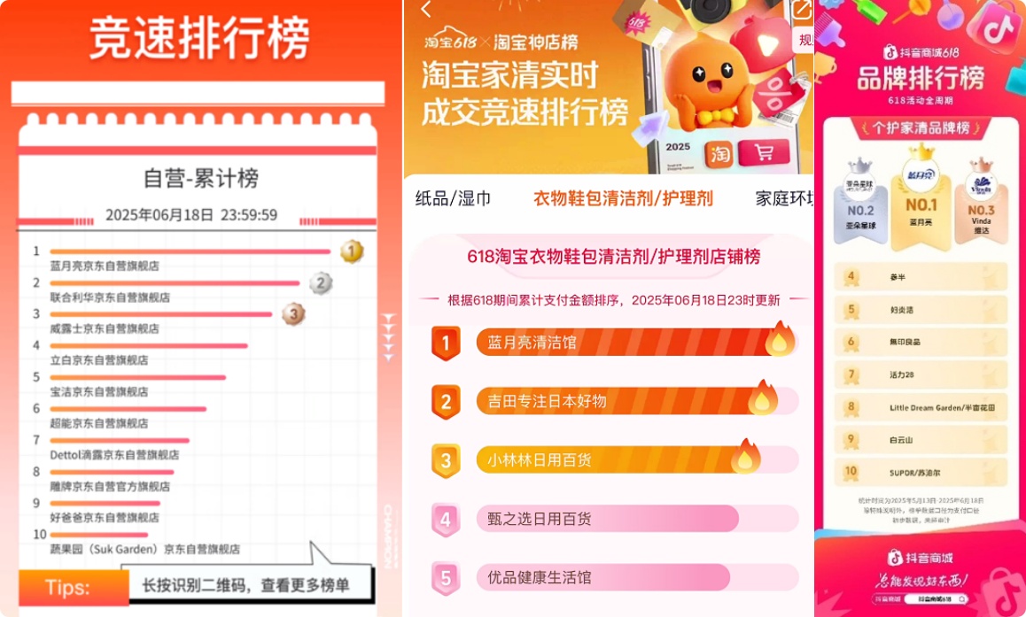 凭借这一系列“组合拳”,蓝月亮不仅在618大促中成为顶流,更是成为推动行业加速向“浓缩+”时代进阶的助燃剂。