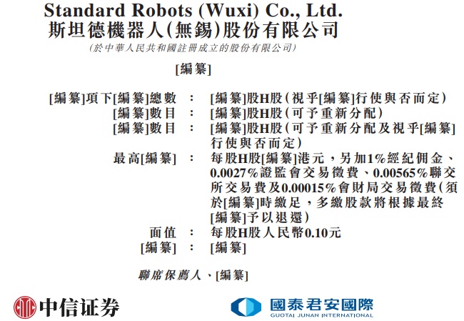 智通财经APP获悉,据港交所6月23日披露,斯坦德机器人(无锡)股份有限公司(下称:斯坦德机器人)向港交所主板提交上市申请,中信证券、国泰君安国际为其联席保荐人。