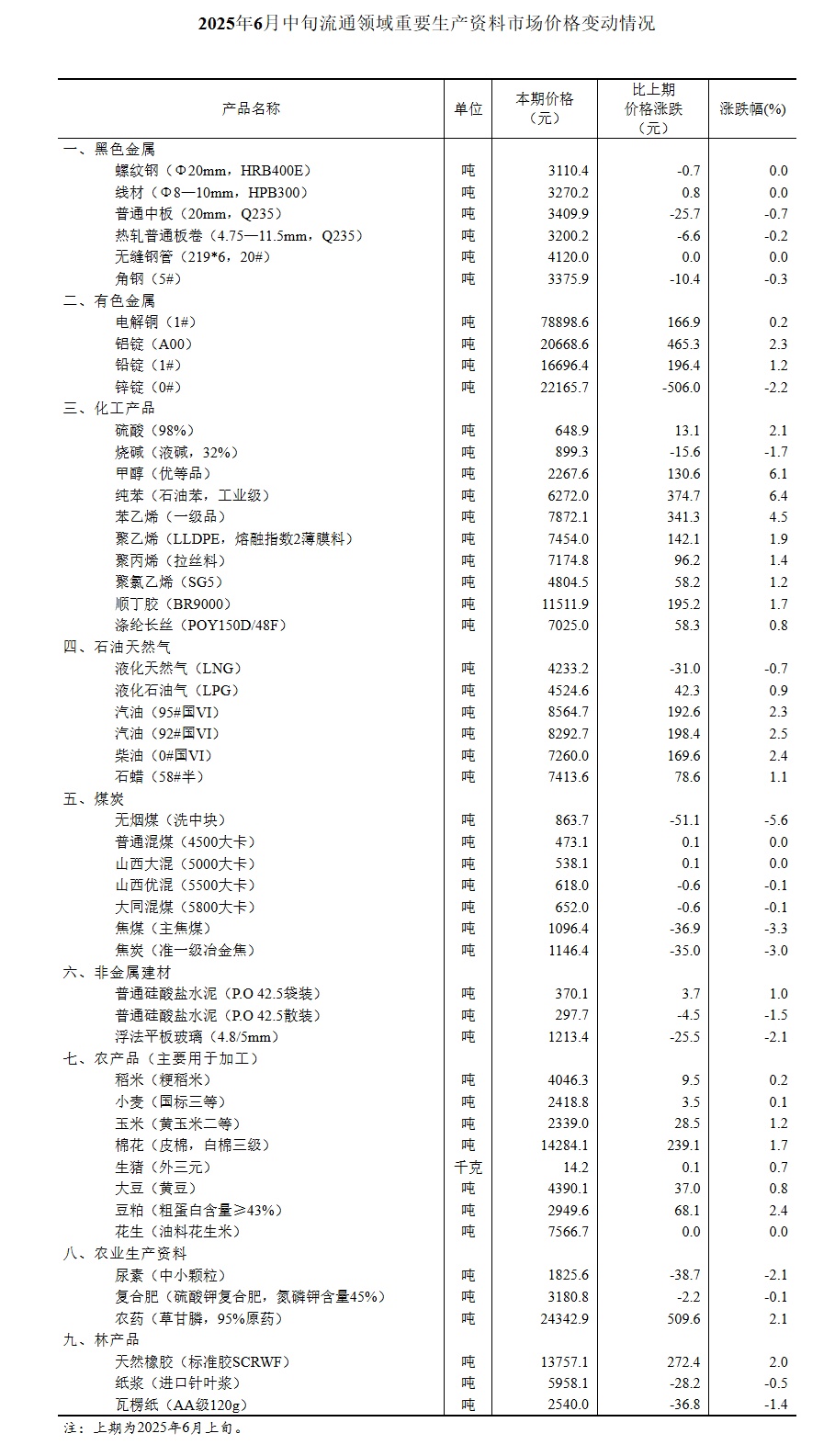 智通财经APP获悉,据国家统计局对全国流通领域9大类50种重要生产资料市场价格的监测显示,2025年6月中旬与6月上旬相比,27种产品价格上涨,17种下降,6种持平。其中,生猪(外三元)价格14.2元/千克,上升0.7%。