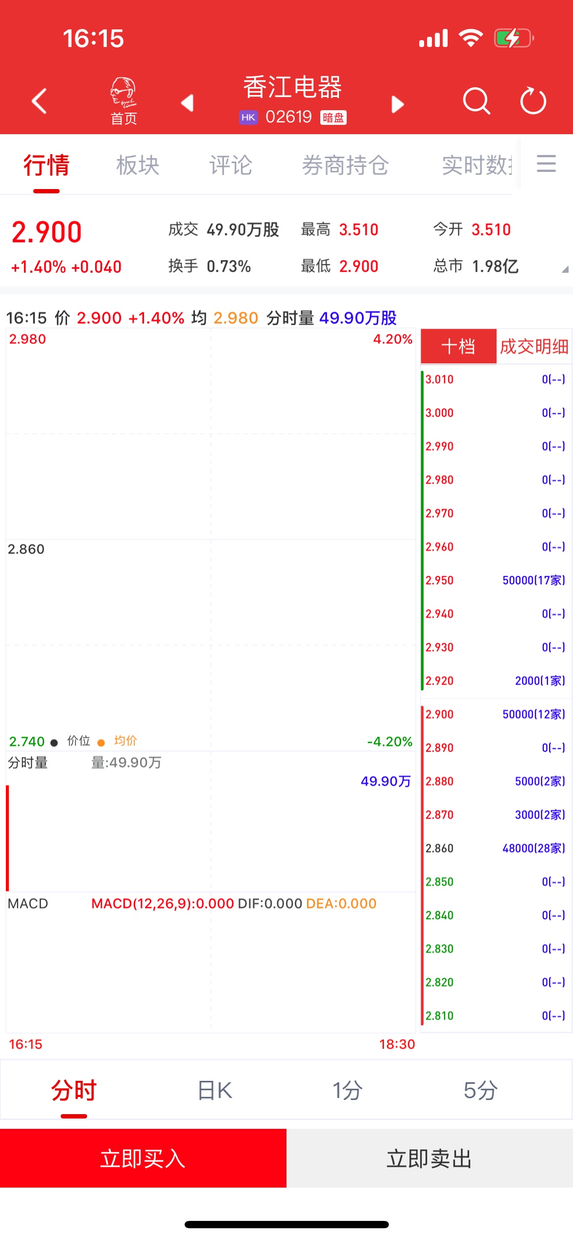智通财经APP获悉,香江电器(02619)将于6月25日(周三)在香港挂牌。截至发稿,利弗莫尔证券暗盘交易显示报价2.9港元,较招股价2.86港元上涨1.40%,每手1000股,不计手续费,每手赚40港元。