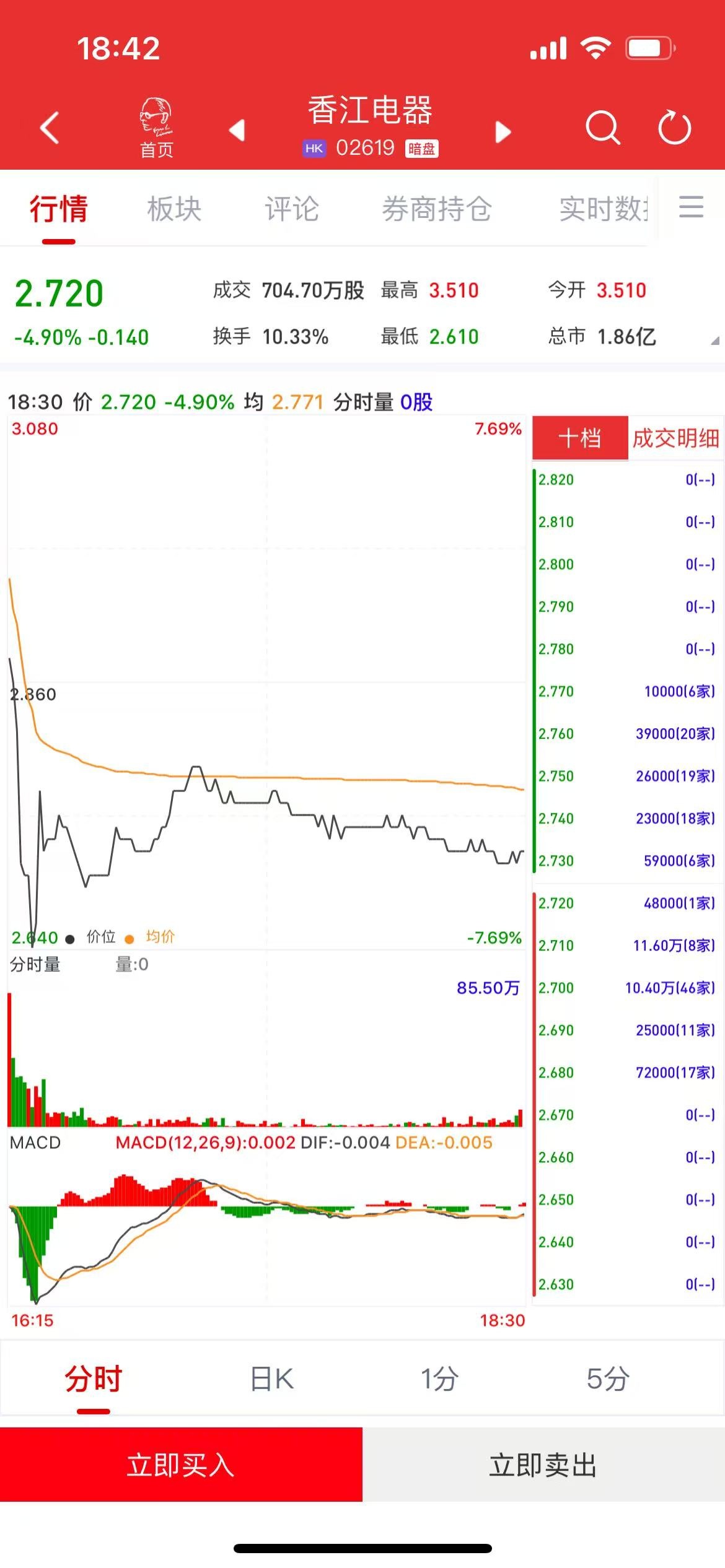 智通财经APP获悉,香江电器(02619)将于6月25日(周三)在香港挂牌。截至收盘,利弗莫尔证券暗盘交易显示报价2.72港元,较招股价2.86港元下跌4.9%,每手1000股,不计手续费,每手亏140港元。