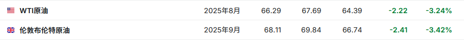 3. 截至发稿,WTI原油跌3.24%,报66.29美元/桶。布伦特原油跌3.42%,报68.11美元/桶。