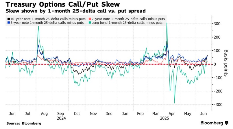 大部分期权交易活动发生在上周五以及周一这两日交易日,当时在特朗普宣布伊朗与以色列达成停火前夕,收益率大幅下跌。
