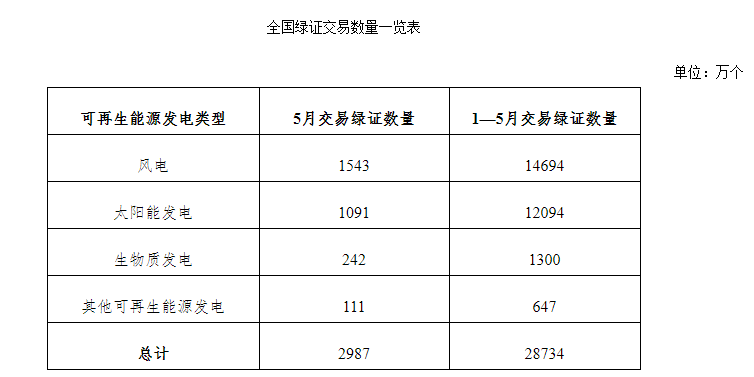 2025年5月,全国交易绿证2987万个,其中绿色电力交易绿证1005万个。2025年1-5月,全国交易绿证2.87亿个,其中绿色电力交易绿证9623万个。(调减1-4月交易绿证数量168万个)
