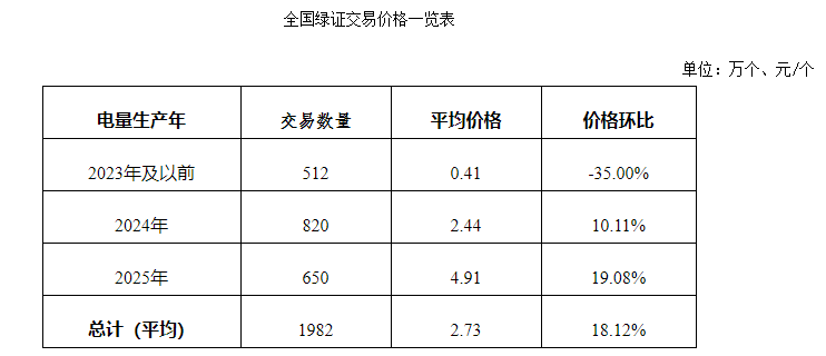 2025年5月,全国绿证单独交易1982万个,交易平均价格为2.73元/个,环比增长18.12%。