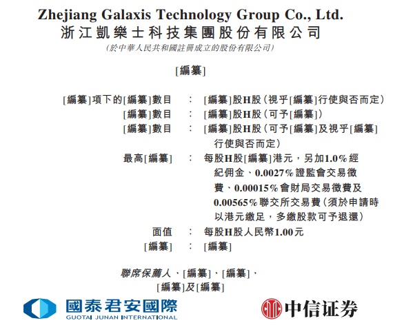 智通财经APP获悉,据港交所6月25日披露,浙江凯乐士科技集团股份有限公司(下称:凯乐士科技)向港交所主板提交上市申请,国泰君安国际、中信证券为其联席保荐人。