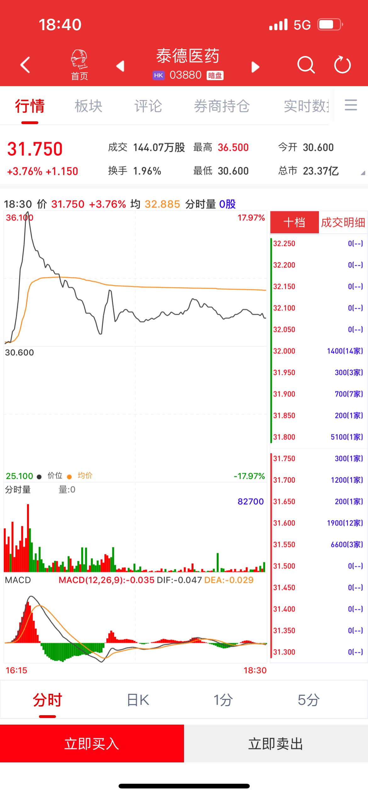 智通财经APP获悉,泰德医药(03880)将于6月30日(星期一)在香港挂牌。截至收盘,利弗莫尔证券暗盘交易显示报价31.75港元,较招股价30.6港元上涨3.76%,每手100股,不计手续费,每手赚115港元。