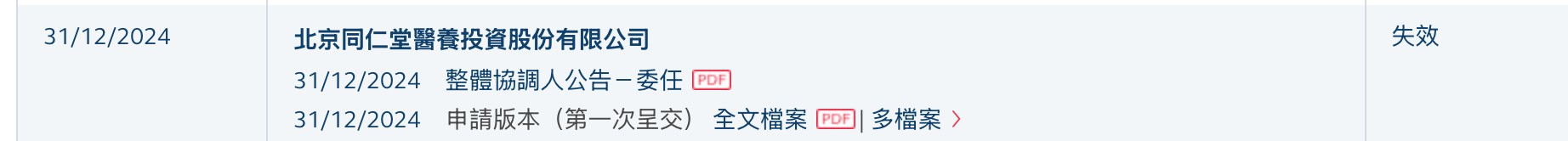 智通财经APP获悉,北京同仁堂医养投资股份有限公司(以下简称:同仁堂医养)于2024年12月31日所递交的港股招股书满6个月,于2025年6月30日失效,递表时中金公司为其独家保荐人。
