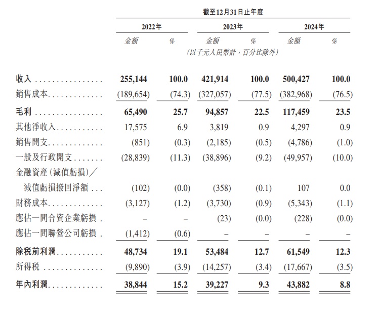 业绩方面,于2022年度、2023年度、2024年度,普祥健康实现收入分别约为2.55亿元、4.22亿元、5.0亿元人民币;同期,年内利润分别为3884.4万元、3922.7万元、4388.2万元人民币。