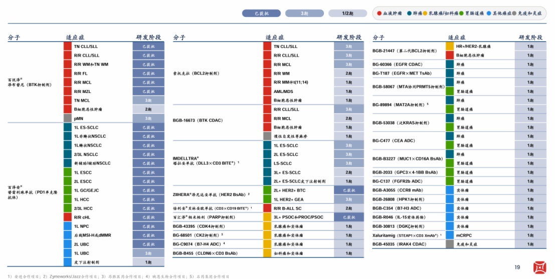 实体瘤领域方面,百济神州主要聚焦乳腺癌/妇科癌症、肺癌和胃肠道癌三个部分。