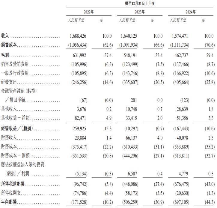 业绩方面,于2022年度、2023年度、2024年度,芯迈半导体实现收入分别约为16.88亿元、16.40亿元、15.74亿元人民币;同期,年内亏损分别约为1.72亿元、5.06亿元、6.97亿元人民币。