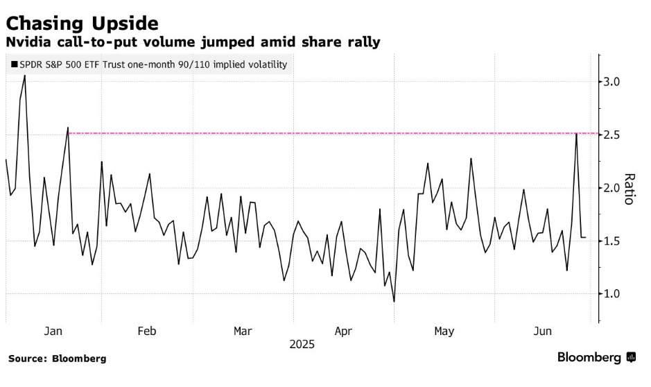 智通财经APP获悉,在标普500指数创下今年2月以来首个历史新高后,交易员们正以空前热情押注市场延续涨势。衍生品市场释放的信号显示,上周投资者疯狂抢购看涨期权,试图通过杠杆工具捕捉超越指数表现的超额收益。