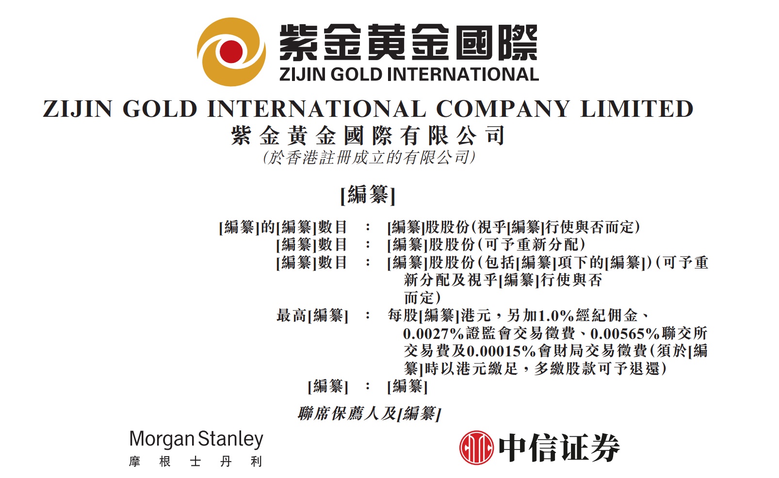 智通财经APP获悉,据港交所6月30日披露,紫金黄金国际有限公司(紫金黄金国际)向港交所主板递交上市申请,摩根士丹利和中信证券为其联席保荐人。5月26日晚,紫金矿业(02899)公告称,公司拟将其控股子公司紫金黄金国际分拆至香港联交所主板上市。