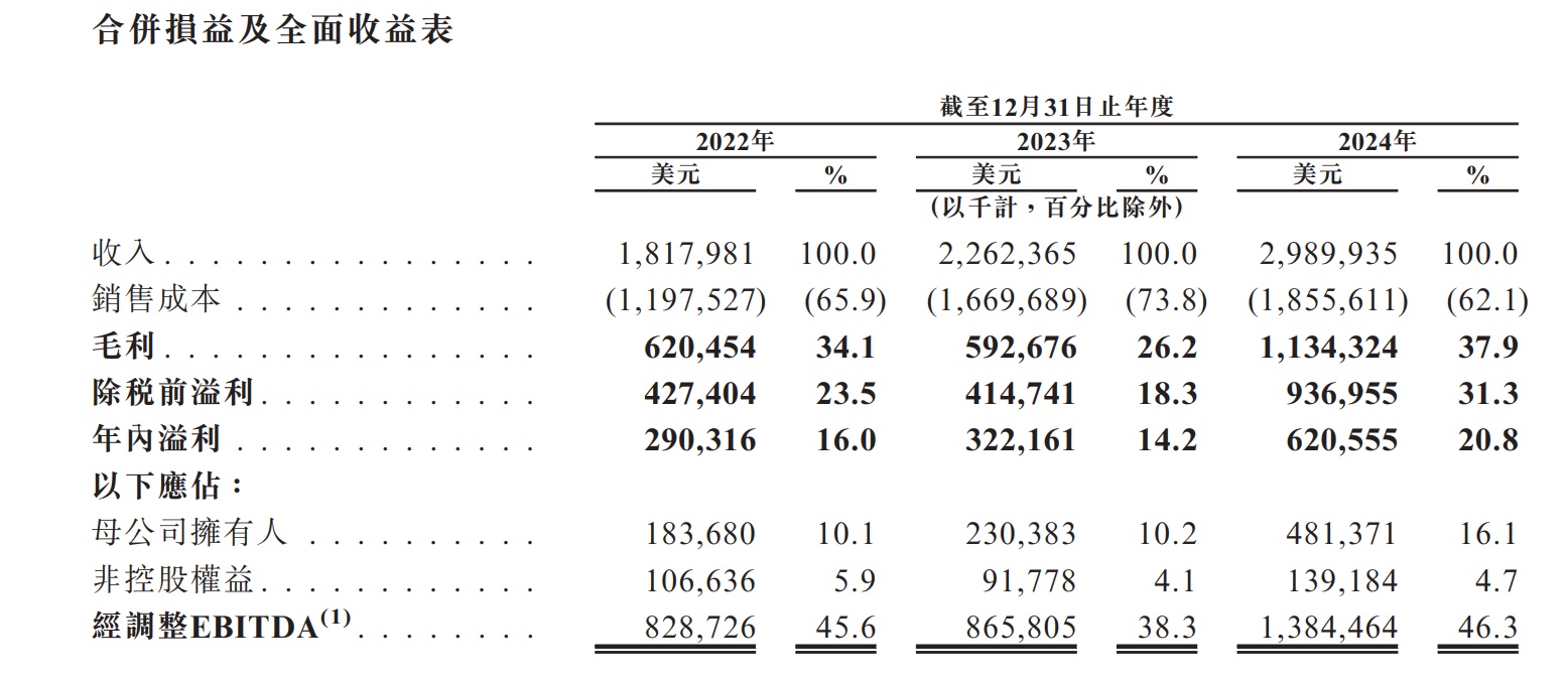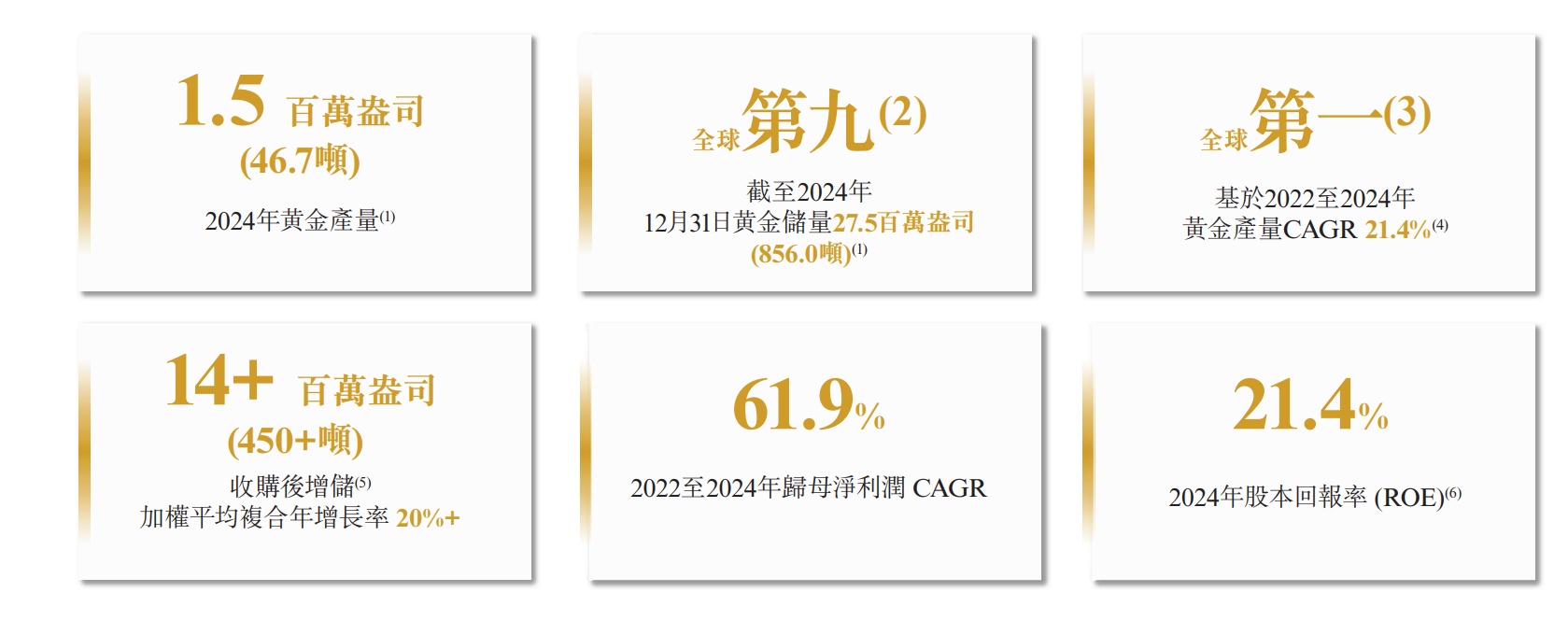业绩方面,于2022年度、2023年度、2024年度,紫金黄金国际实现收入分别约为18.18亿美元、22.62亿美元、29.90亿美元;同期,年内溢利分别约为2.90亿美元、3.22亿美元、6.21亿美元。