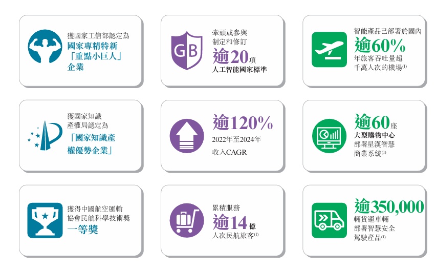 公司在计算机视觉领域拥有十年以上的技术积累,围绕 AI 视觉与光学成像技术构建起完整的全栈技术体系,实现了从技术研发到产品应用的端到端贯通。公司的核心技术能力包括基座技术、融合技术及组件技术三个级别。通过将公司的人工智能技术与软硬件相结合,公司已建立成熟的产品化能力及端到端交付能力。基于公司的核心技术能力,公司开发了全面的技术组件,包括 RecoSee 视觉感知智能体、RecoAware 视觉认知智能体及 RecoThink 视觉推理智能体。利用三大视觉智能体作为通用构建模块,公司已开发并交付涵盖民航、商业空间、货运物流等应用场景的多品类视觉智能产品。公司各产品及解决方案均属上市规则第18C章所界定的特专科技行业可接纳领域。
