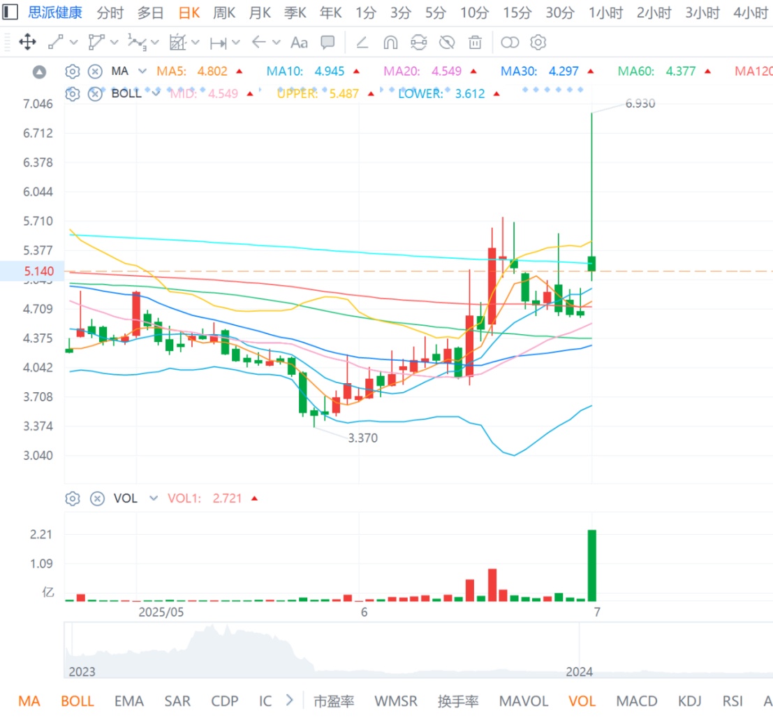 另一方面, 7月2日股票成交量显著放量背后,持币者面对急速拉升的股价也要承接场内分歧,显示出场外抢筹迹象明显,侧面印证思派健康的吸引力。