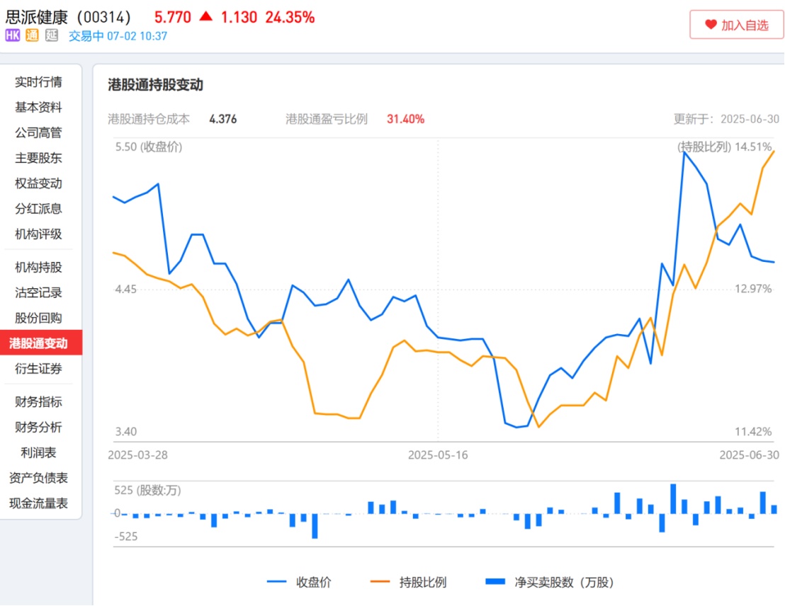 在此次政策利好之前,南向港股通资金便在思派健康上显示出了抢筹迹象,也由此以一己之力托起了该股的流动性。从“北水”选择来看,自5月28日至今,无论思派健康股价大幅拉升还是近日出现震荡,港股通资金一反传统的“越跌越买”策略,而选择了持续增持策略。