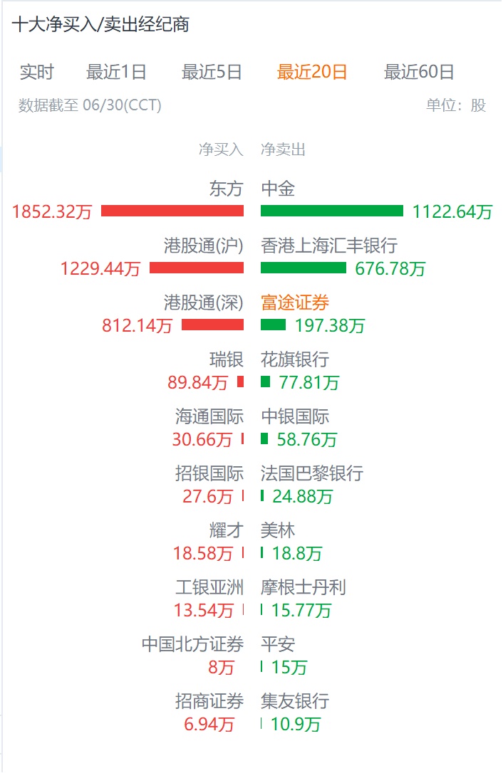 而从持仓变化来看,近期多家机构都在上调思派健康持股比例。从经纪商交易席位来看,近20日,前五位买入席位分别为东方证券(香港)、港股通(沪)、港股通(深)、瑞银及海通国际分别买入1852.32万股、1229.44万股、812.14万股、89.84万股及30.66万股。