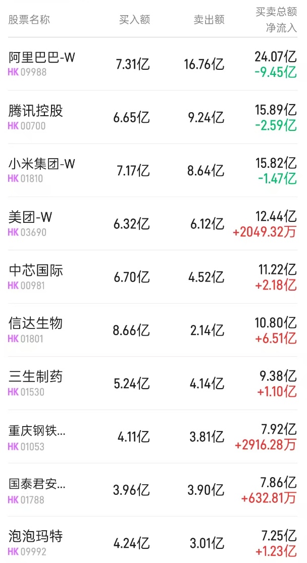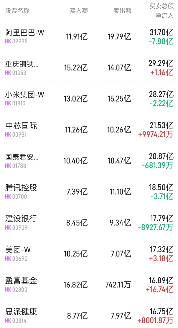此外,中芯国际(00981)、思派健康(00314)分别获净买入3.17亿、8001万港元。