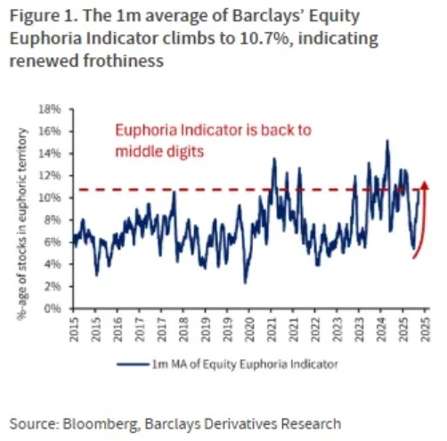 这一系列现象正推动巴克莱银行研发的市场“非理性繁荣”监测指标急速攀升。这个由前美联储主席艾伦·格林斯潘提出的经典概念,旨在警示资产价格偏离基本价值的潜在风险。