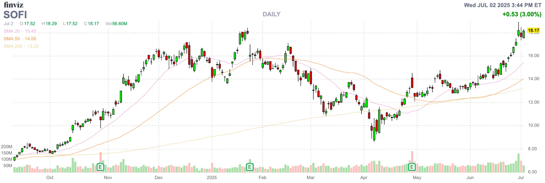 如果加密货币能成为SoFi的下一个增长拐点,其股价将有巨大的上行空间。这家金融科技公司将因此获得双重提振:一方面提升其已然稳健的销售增长预期,另一方面使利润再上新台阶,同时可能因其从依赖借贷产品增长转向可扩展、轻资本收入模式而获得相应的估值倍数提升。