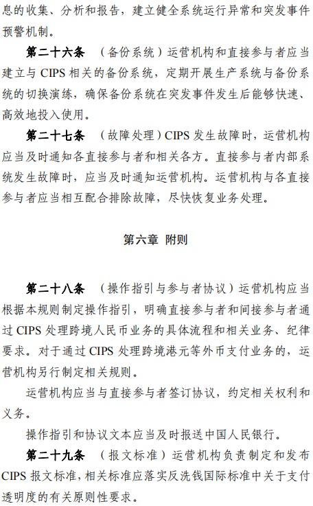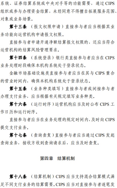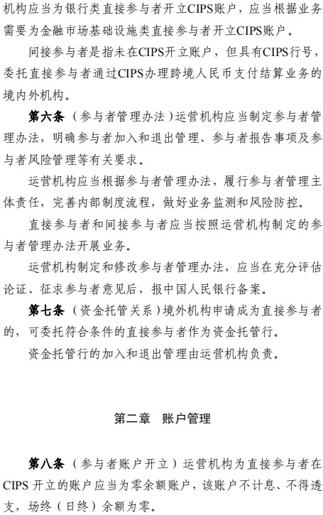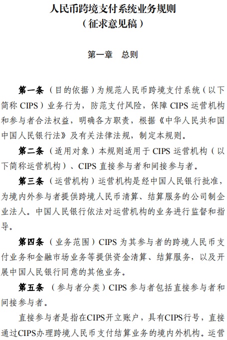 智通财经APP获悉,7月4日,中国人民银行发布关于《人民币跨境支付系统业务规则(征求意见稿)》公开征求意见的通知。《业务规则》明确了CIPS参与者的账户管理、注资、资金结算等详细流程。随着CIPS功能和服务的持续优化,有必要调整《业务规则》相关内容,仅对参与者业务行为提出原则性要求,确保规范性文件的前瞻性和科学性,有效适应CIPS业务发展和功能升级的需要。