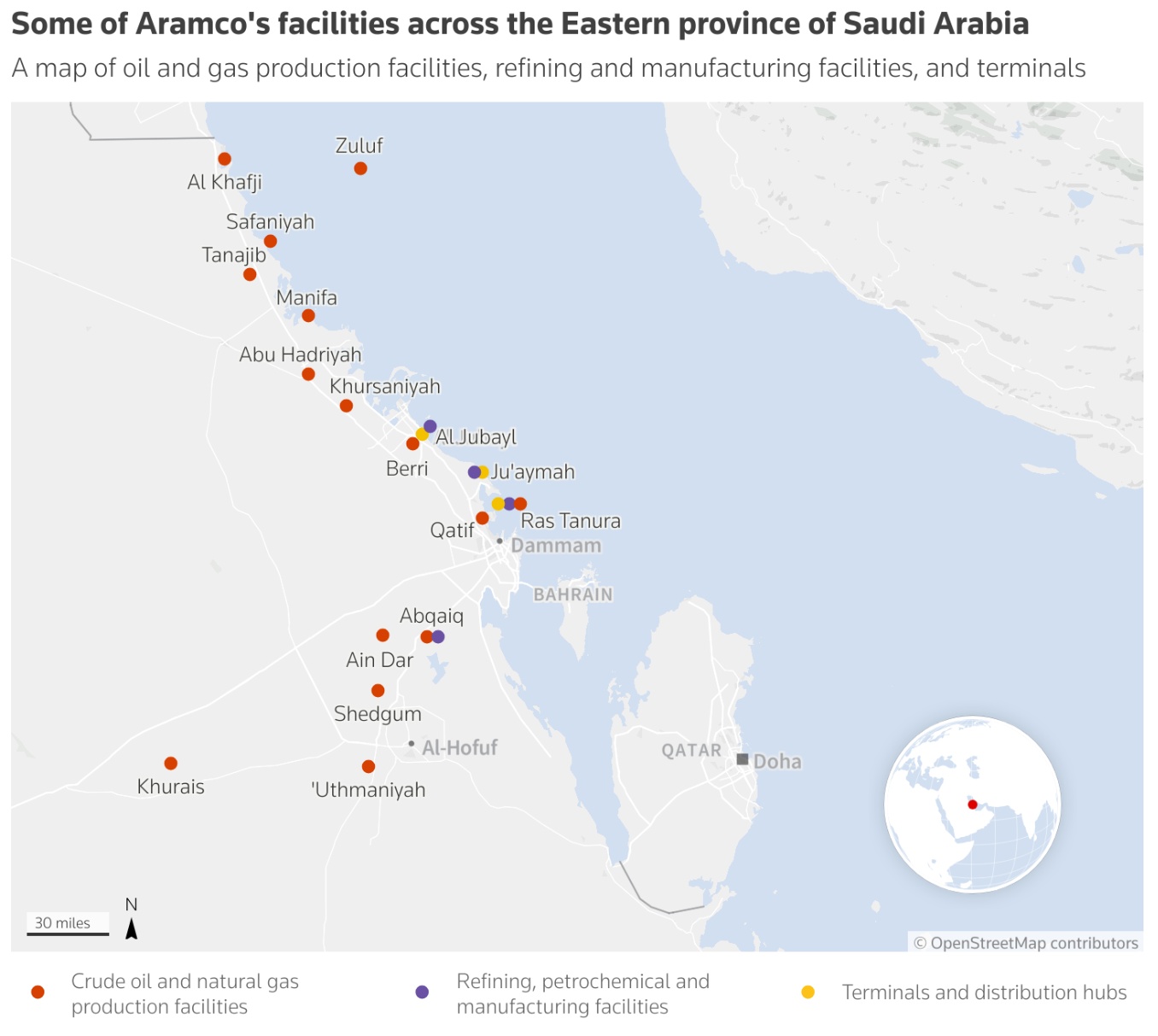 根据阿美2024年度财务报告,该公司在沙特境内全资或部分持有18座发电厂及相关基础设施,为其天然气工厂和炼油厂提供能源。另有新建电厂即将投产,其中塔纳吉布燃气电厂项目预计今年投入运营。