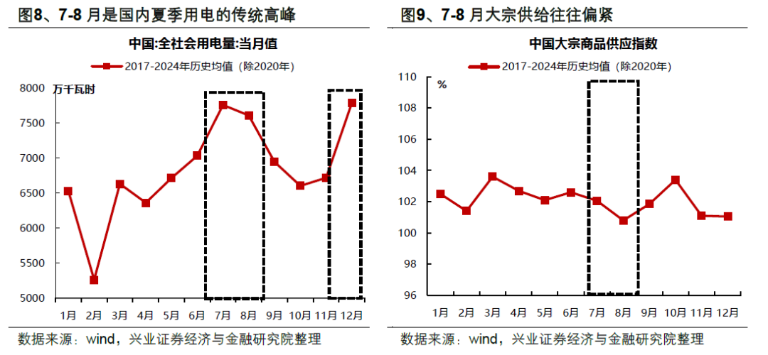首先,随着夏季用电高峰以及下半年传统消费和生产旺季的临近,周期资源品在三季度将步入传统旺季,需求端的改善将赋予行业阶段性的景气比较优势。进入 7 月,受高温天气影响,国内进入用电高峰,煤炭、石油石化等资源品也随之迎来需求高峰期;而供给端的开工率也会因为高温天气甚至可能会出现限电停产而受到影响,往往会呈现需求旺盛但供给偏紧的局面。而9月后随着天气转好,也将步入国内经济传统旺季,无论是“金九银十”地产和基建项目施工高峰、还是“双十一”、“双十二”等大规模消费促销活动,中下游备货和产销需求的集中释放均将对化工、有色、钢铁等上游周期资源品形成直接拉动。