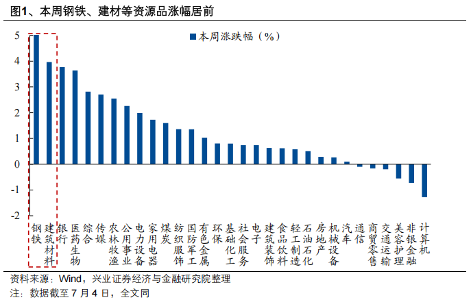 7-8月是钢铁、化工、有色等资源品的传统高胜率窗口,背后是旺季+涨价的确定性支撑,近期“反内卷”政策的部署有望更加强化这一逻辑。