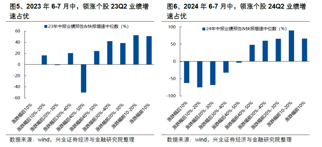 从个股表现来看,中报预告、快报陆续发布期,业绩对于个股表现的影响十分显著。过去两年,6-7月中领涨的个股大多具备更高的中报业绩预告&快报增速,未来一段时间具备自下而上挖掘alpha的市场环境。