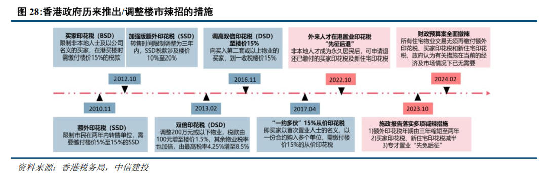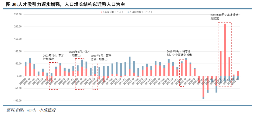 需求侧:全面撤辣减负,筑巢引凤吸引人才。(1)税制:香港地产持有环节涉税为地租(地税)、差饷和物业税,交易环节为多种印花税。2024年以来香港政府全面撤辣,地产交易涉税仅余从价印花税一项。(2)杠杆水平:香港居民若购买按揭保险,最高可达9成按揭购房;(3)人才引进:香港人口自然增长连续5年为负,增长结构以迁移为主,六大人才引进计划成效显著。